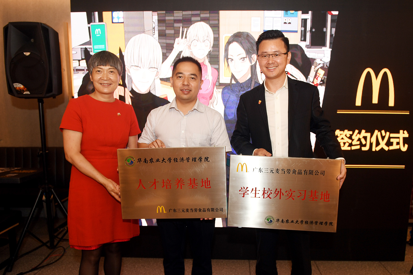 5月17日上午,经管学院党委副书记罗军、辅导员以及学生骨干一行15人应邀出席麦当劳2018年全国招聘周发布会。会上,罗军副书记代表华南农业大学必赢3003no1线路检测中心,与广东三元麦当劳食品有限公司总经理张越先生,共同签署“人才培养基地”共建协议。