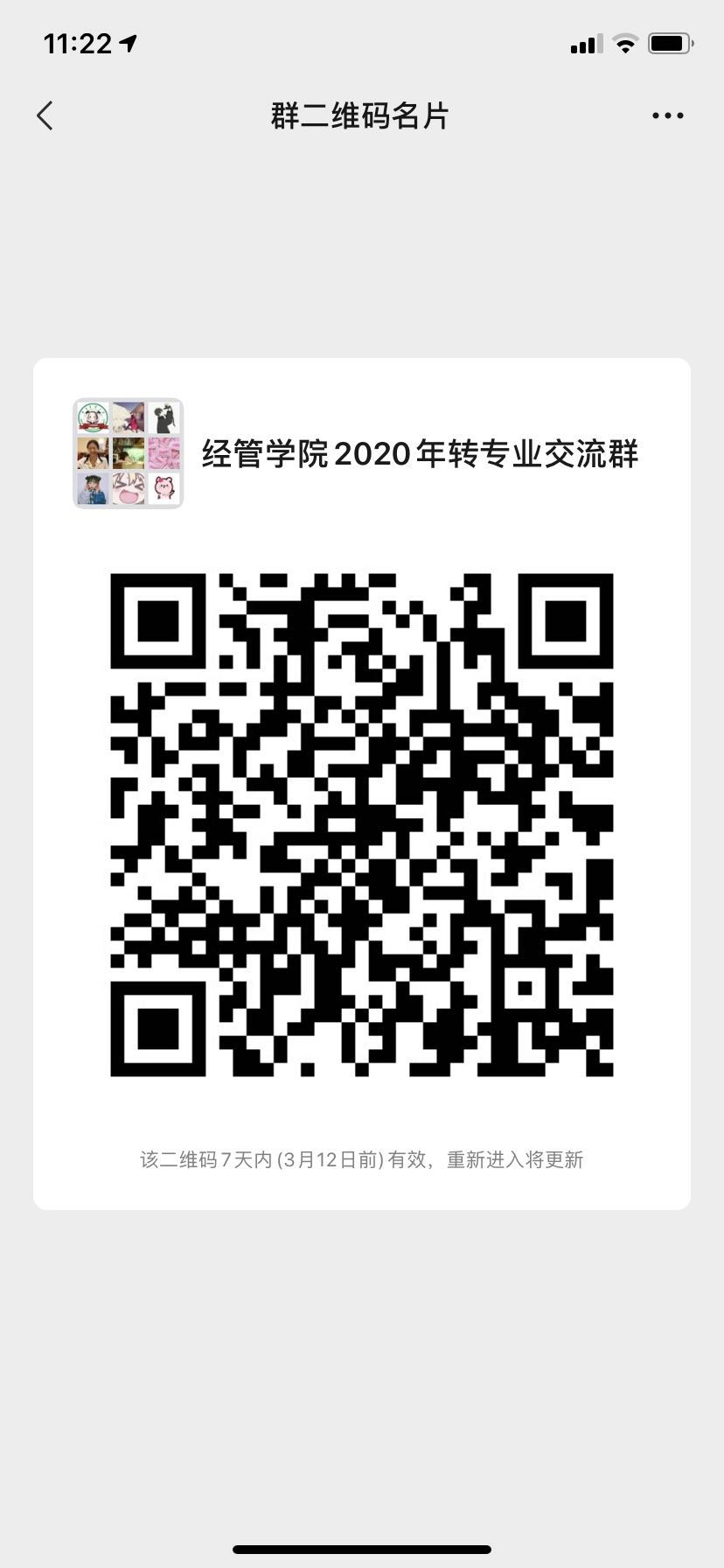 ①心理测试时间:2020年3月8日上午9:00一11:00。测试前进入“经管学院2020年转专业工作交流微信群(二维码见文末)”,请申请转专业的学生务必在测试前60分钟以“学院十姓名"方式申请入群。