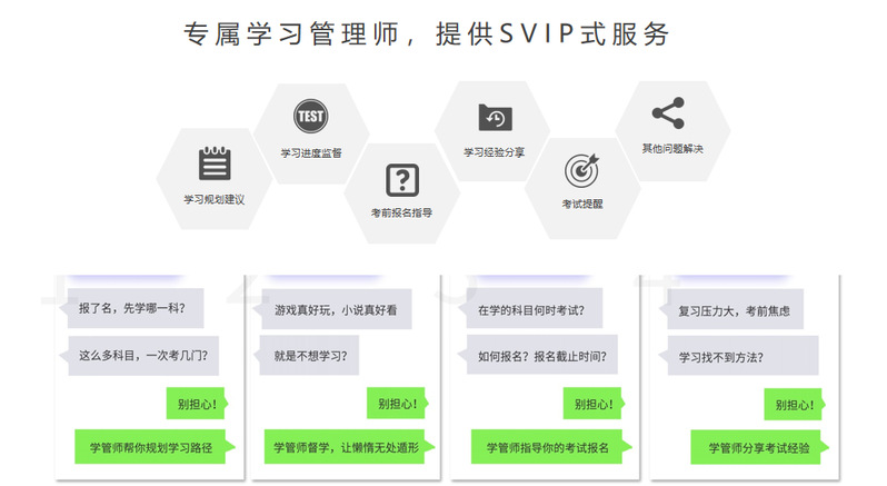 专属学习管理老师进行学习规划建议、学习进度监督、考前报名指导、学习经验分享,帮助学员更快更好地通过ACCA考试。