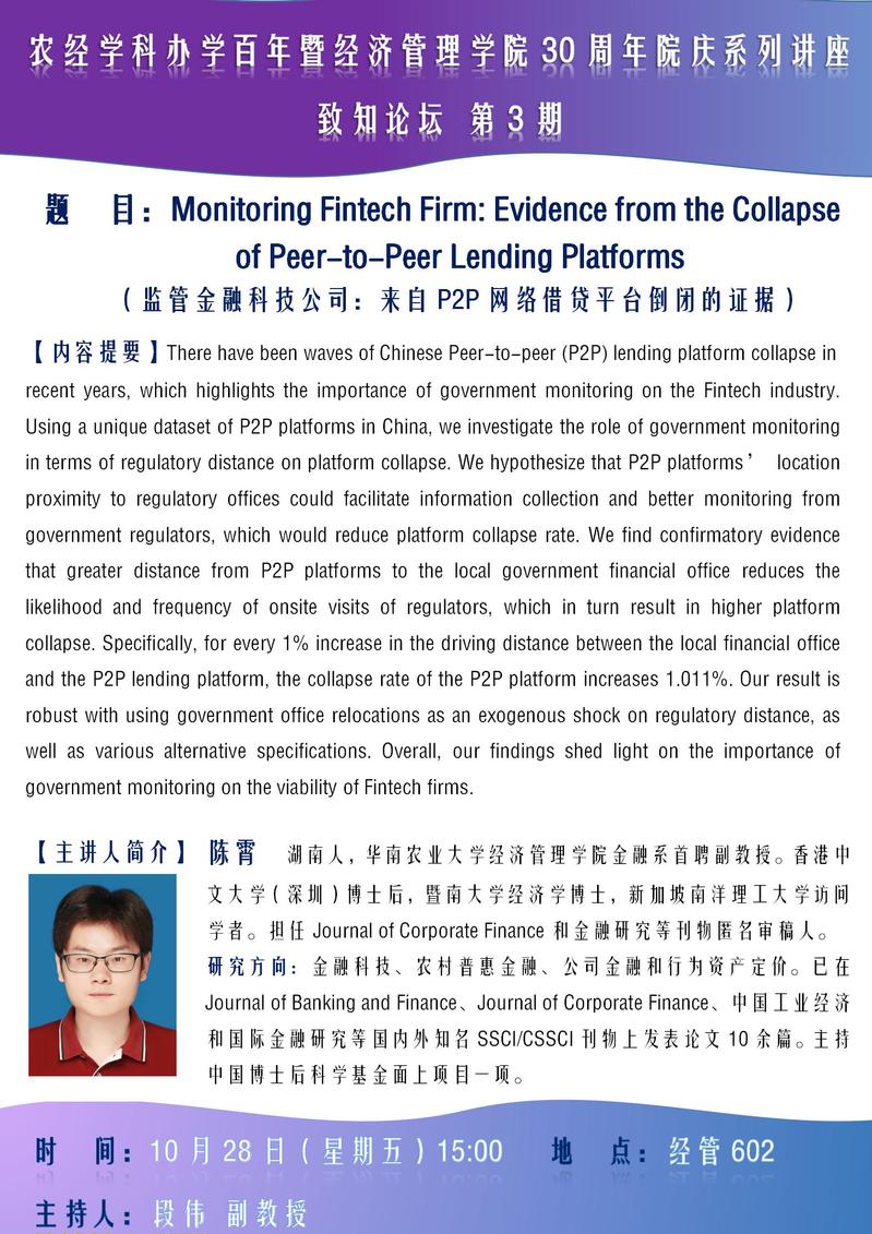 农经学科办学百年暨必赢3003no1线路检测中心30周年院庆系列讲座:致知论坛第3期